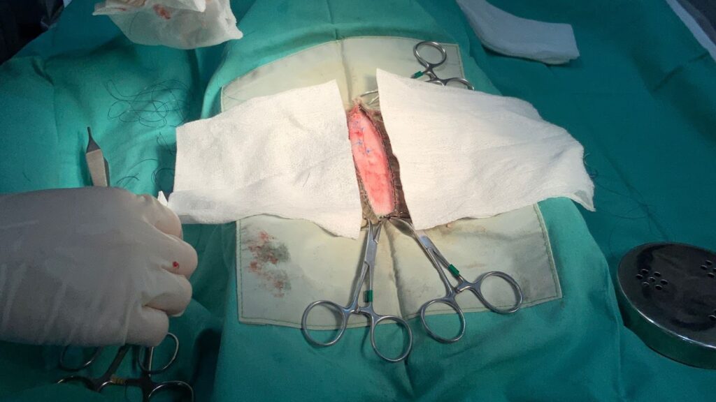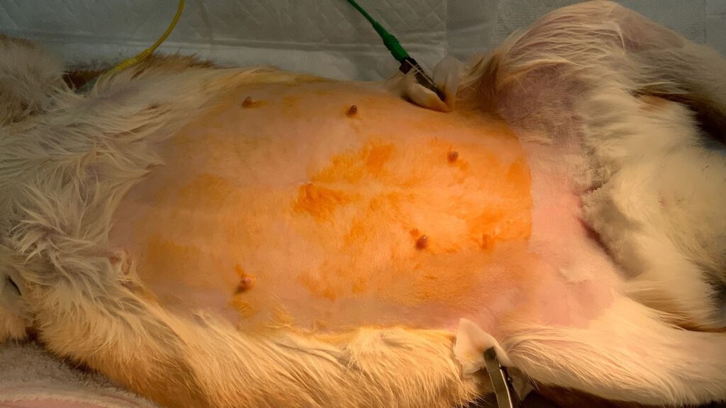 ②お腹を消毒・切開